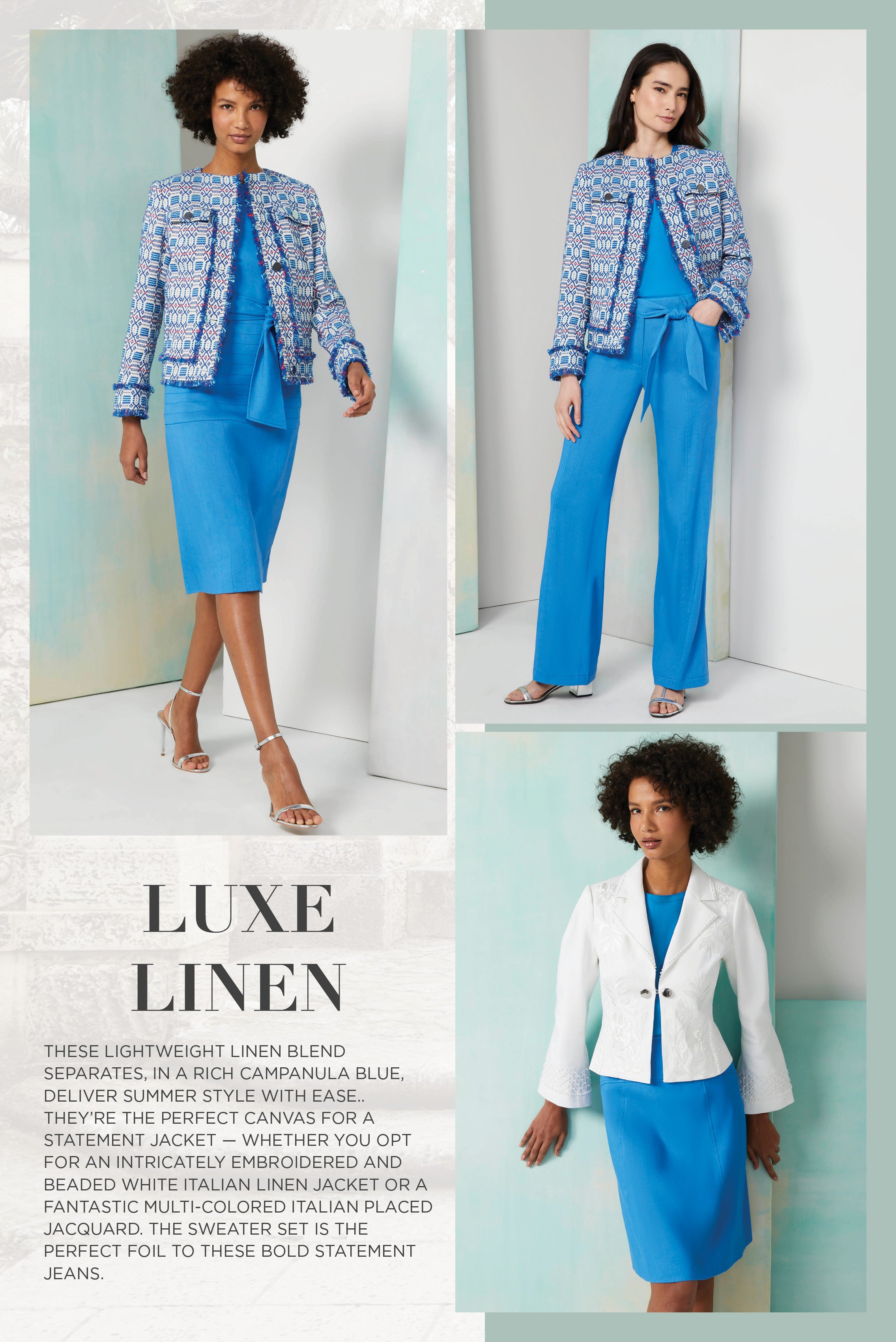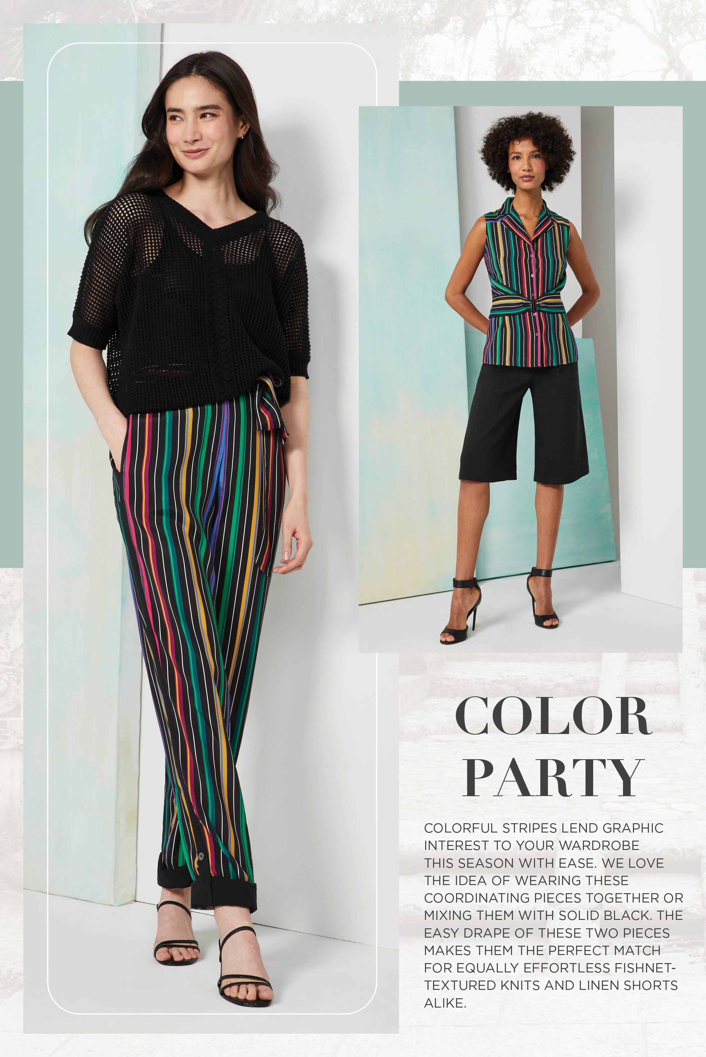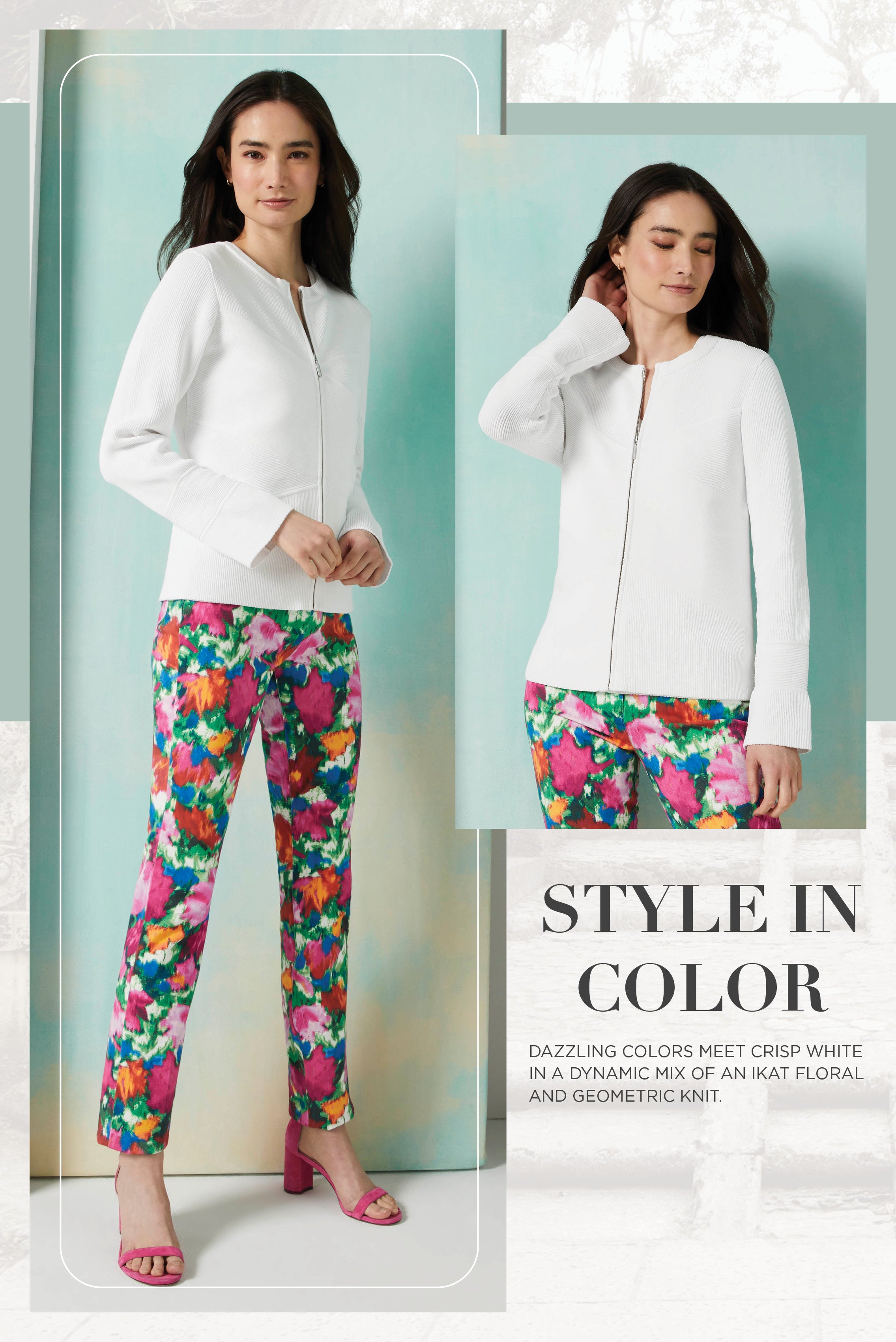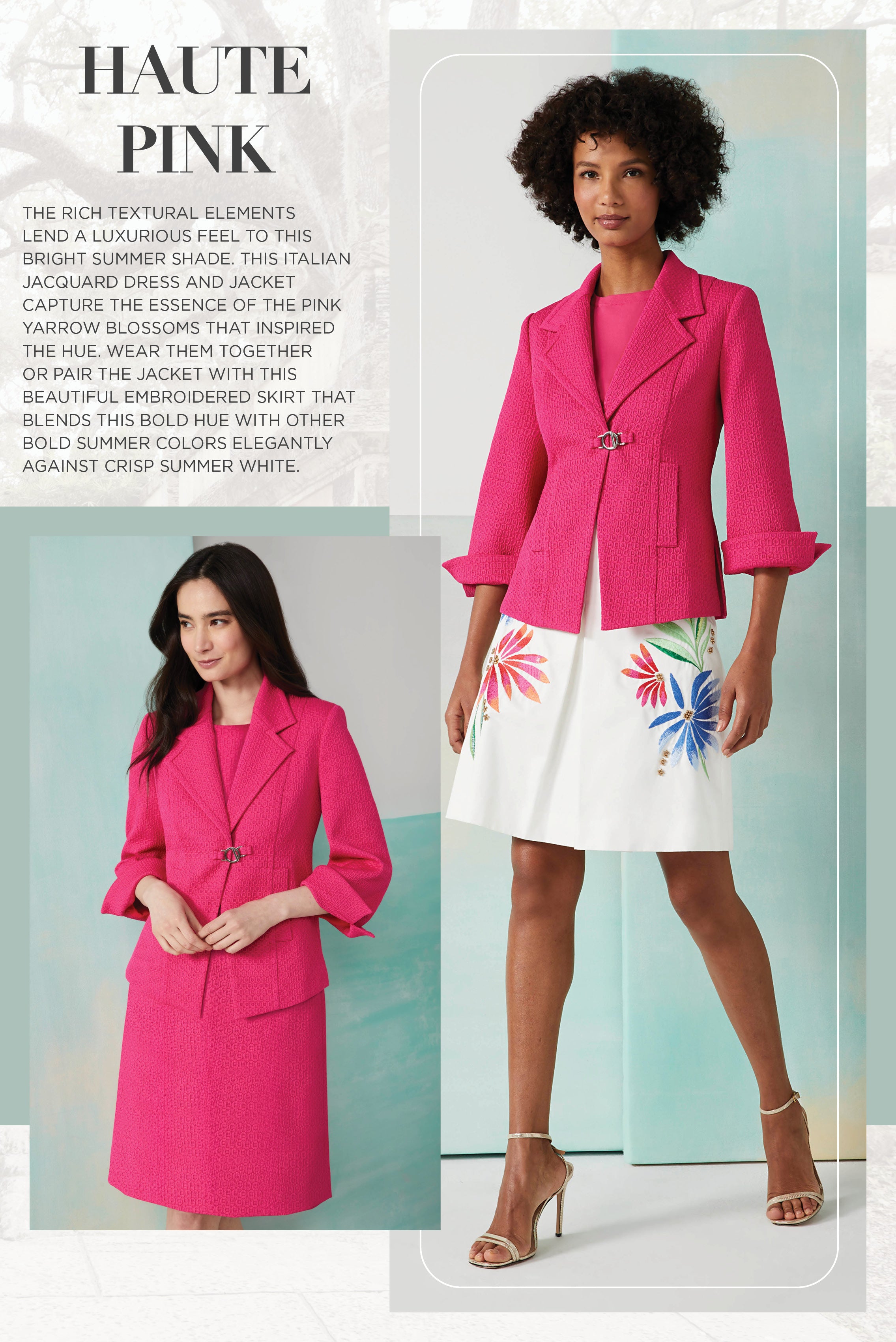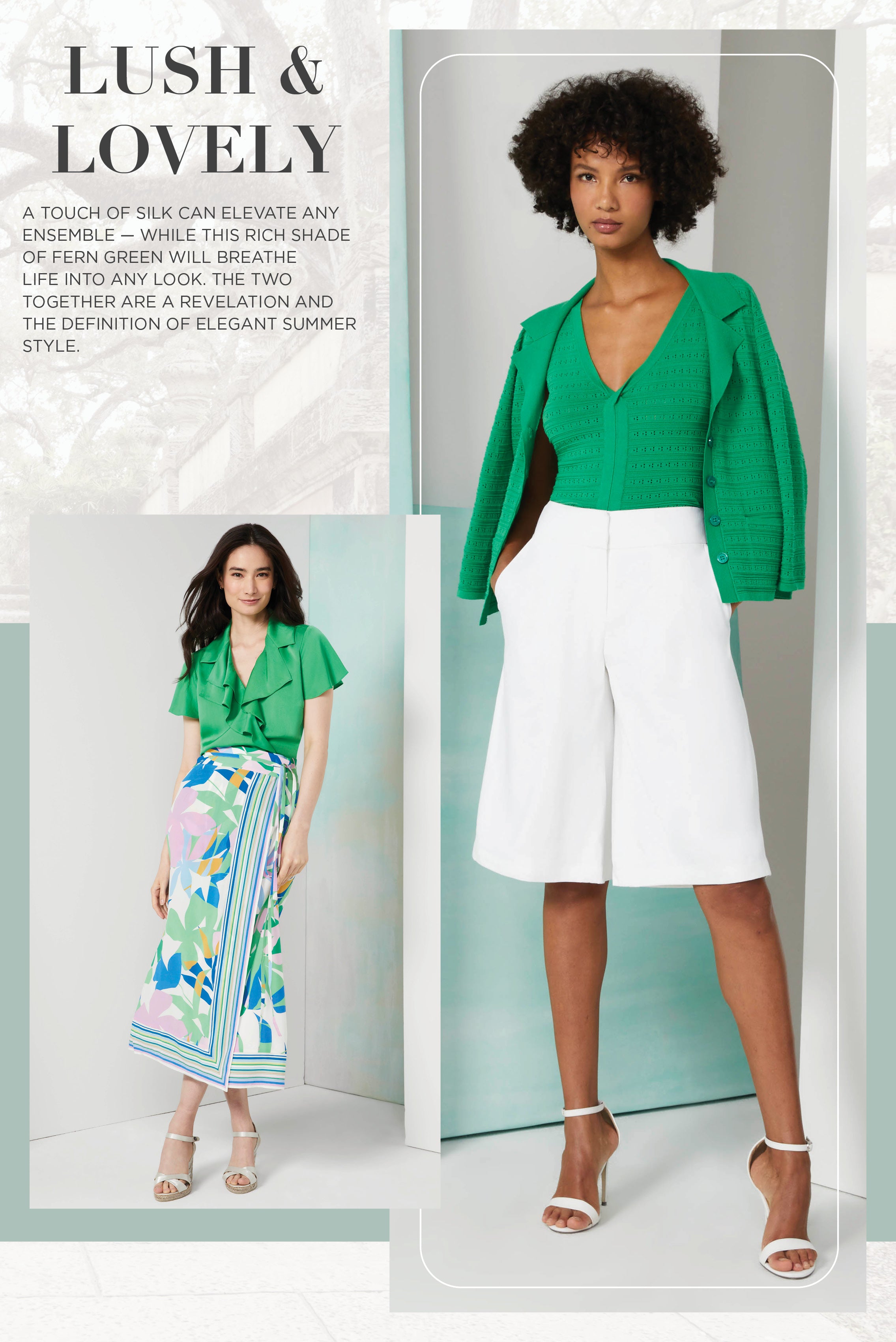 Discover the allure of Andalusia with our Chic Summer Tapestry collection, inspired by the opulent beauty of Southern Spain. Majestic prints and intricate knits evoke the vibrant hues and lush landscapes of the region's historic gardens, offering a luxurious summer wardrobe filled with tropical enchantment.