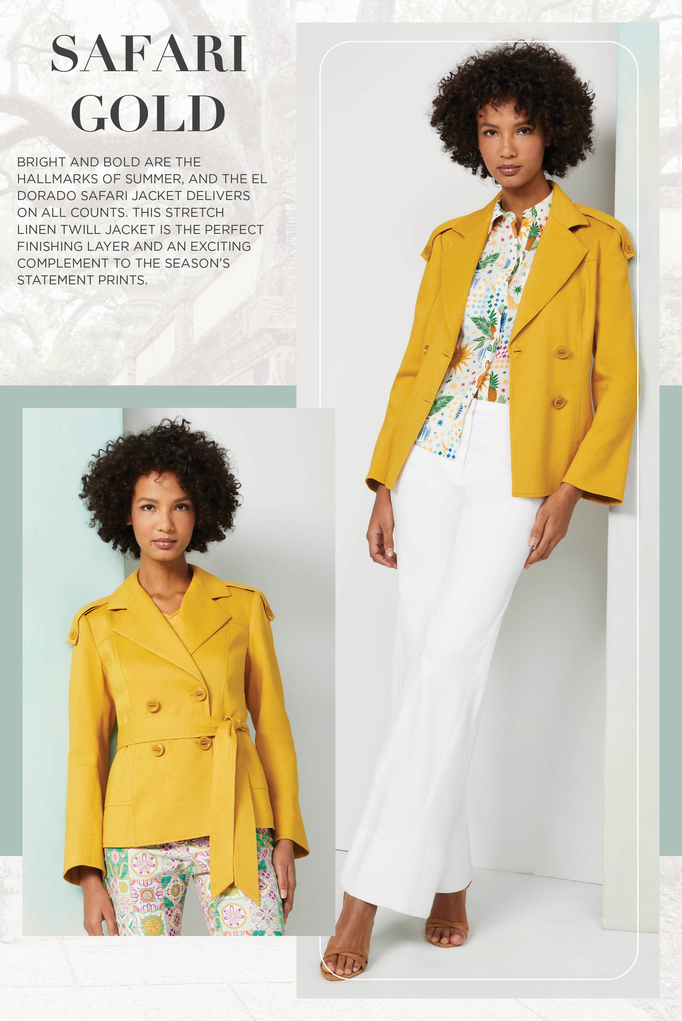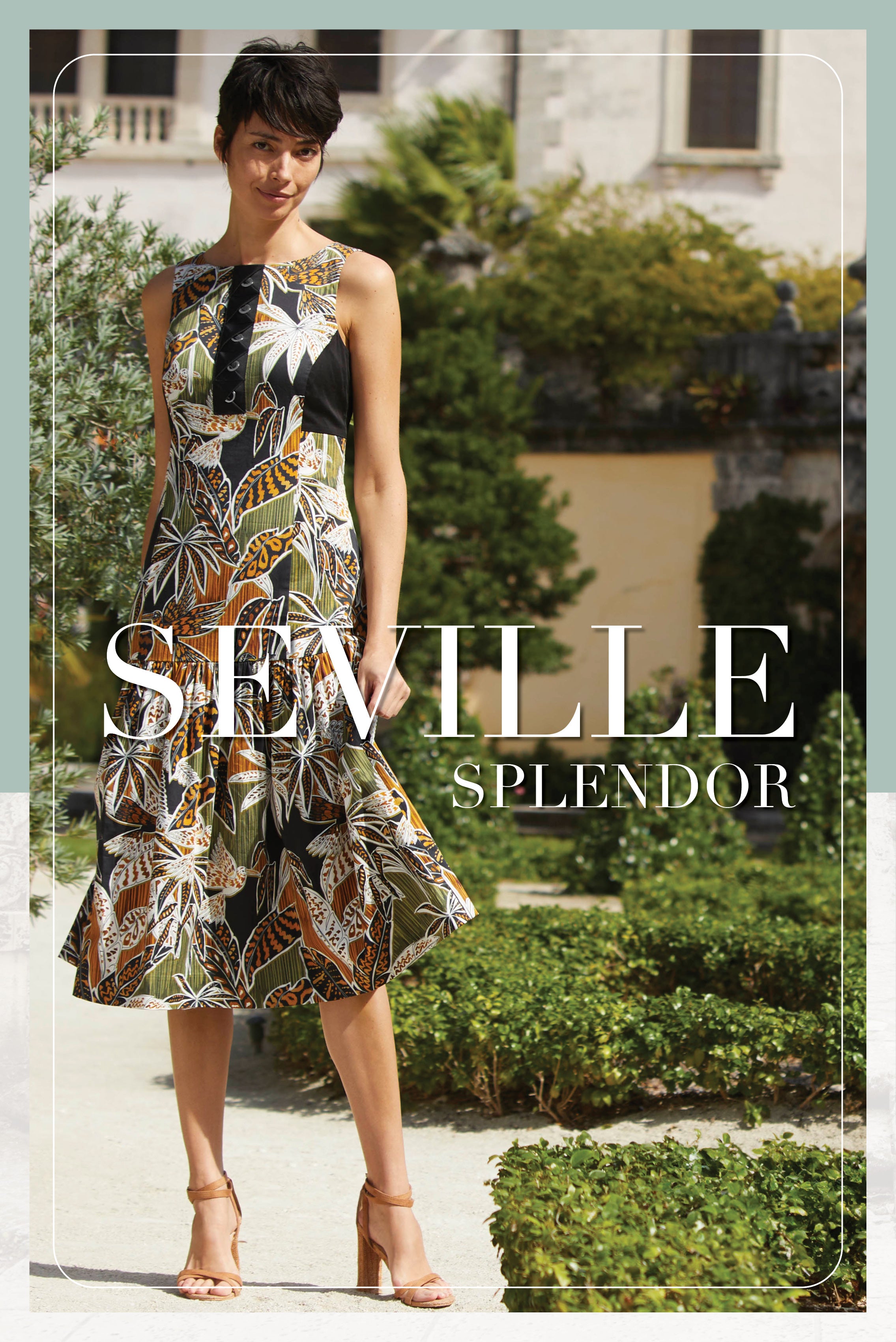 Indulge in the allure of Southern Spain with our Seville Splendor collection, capturing the essence of Andalusian glamour and elegance. Featuring Goya black, white, and rich spicy gold, our pieces echo the untamed beauty of Seville’s Royal Alcazar Gardens, infusing your summer wardrobe with sophisticated botanical motifs and airy silhouettes.