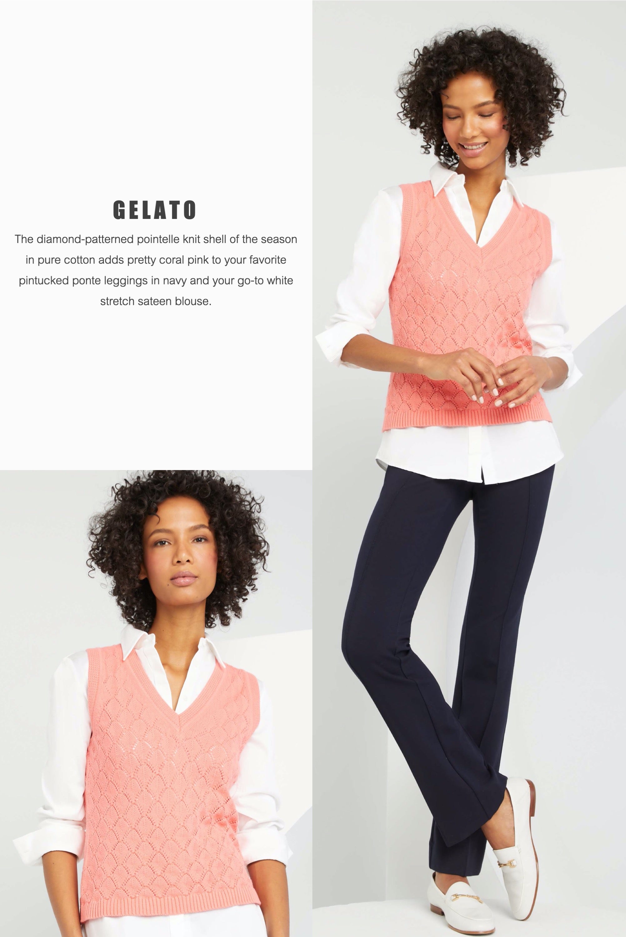 Navy and white fashions in nautical styles create the ideal wardrobe for a posh Mediterranean cruise. Consider adding a striped shirt, white dress, navy blazer, espadrilles, wide-leg pants, or a button-front tweed dress to your wardrobe for chic and sophisticated nautical ensembles that are perfect for summer escapes. Start with the military side stripes or the more casual Breton variety. Jackets, pants, and knit tops feature domed buttons in shiny gold that are embellished with anchors. A cowl neck striped top in silk satin has a built-in scarf for flair. A soft striped sheath dress in fringed Italian tweed is trimmed in navy twill trapunto. A solid navy satin top adds dressed-up glamour. An airy pointelle knit shell balances these nautical ensembles with its warm sandstone neutral.