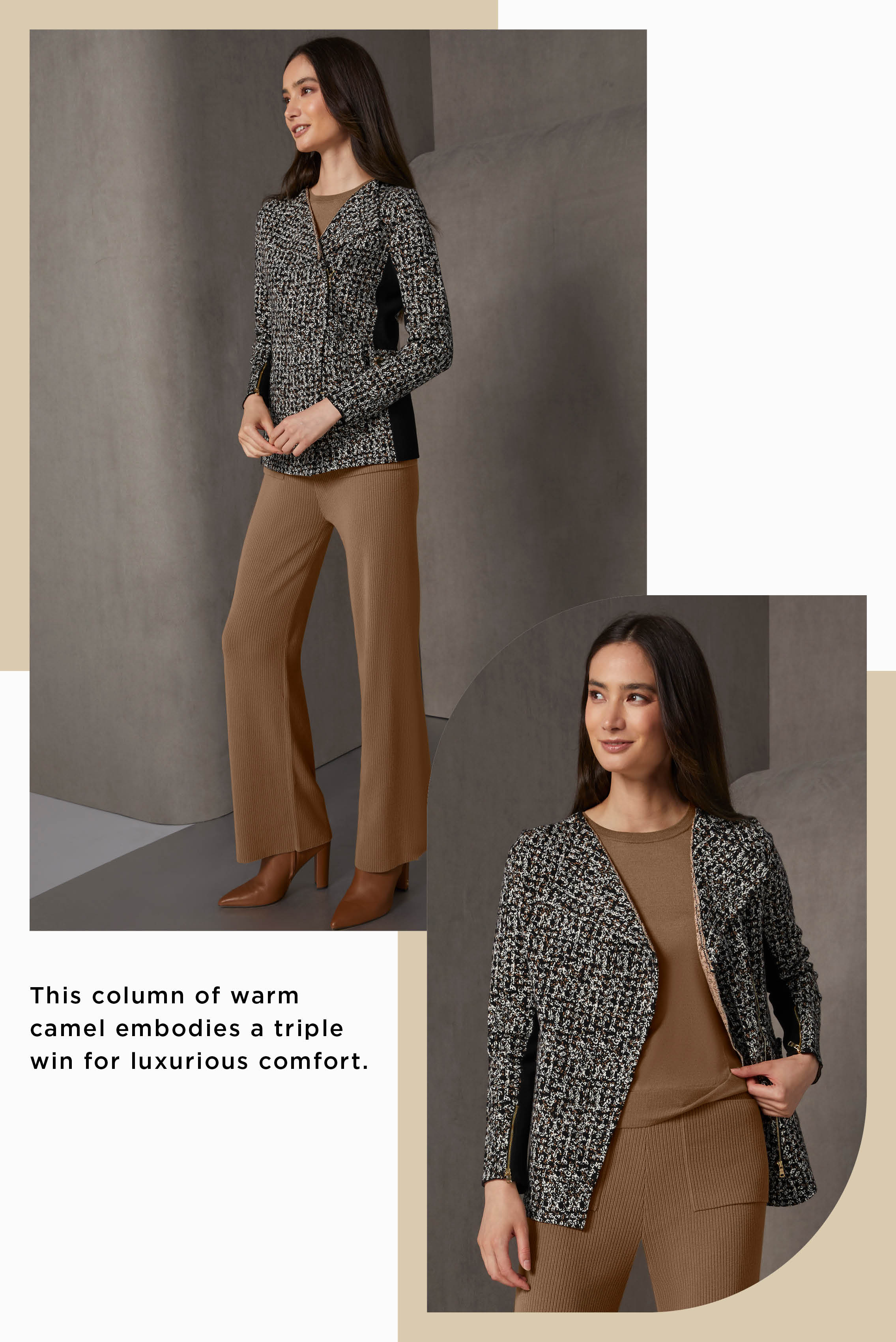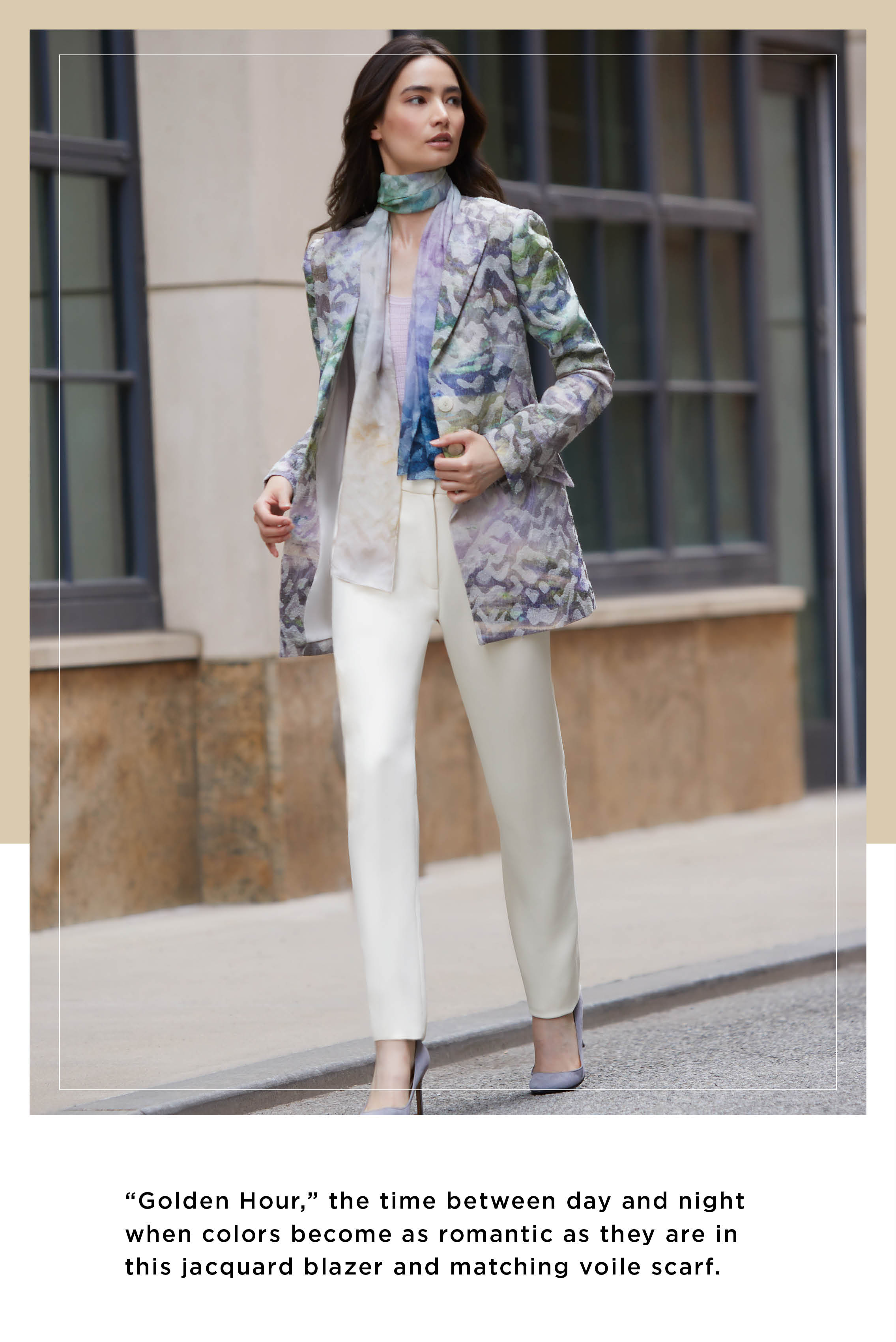 "New Beginnings" invites you to embrace the enchanting lighting effects of dawn as a source of inspiration for our refreshing winter fashion collection. This is when the rising sun paints the sky in romantic misty violets, gray greens, and other sublime colors, symbolizing the promise of a new day and a revitalized wardrobe. In a palette featuring nouvean navy, laurel wreath green, soft lavender fog, warm tapioca, and very berry pink, our collection reimagines winter as a canvas for a new year's rejuvenation. Opulent knits, intricate prints, and woven jacquards add allure, elevating both casual essentials and special occasion ensembles. The fusion of luxurious textures with this palette, heralding renewal, transforms each piece into a symbol of transition and hope. "New Beginnings" expresses an attitude that embraces change, intensifying winter looks with a sense of rebirth and celebration. This capsule collection serves as a testament to the dawn of possibility.